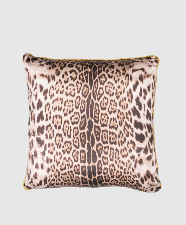 Рожева декоративна подушка з принтом монограми логотипа а анімалістичний принт