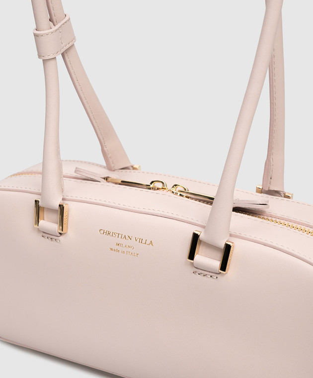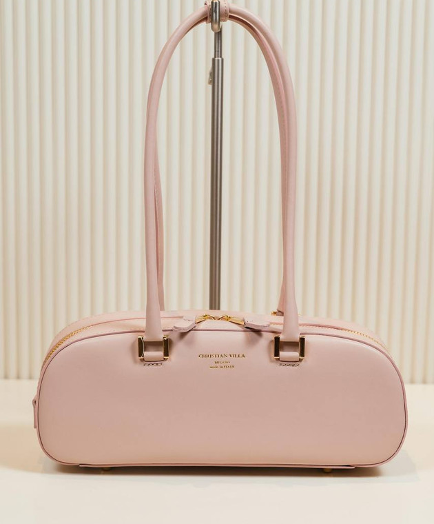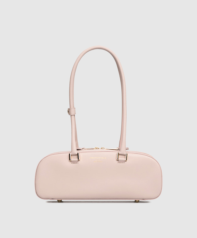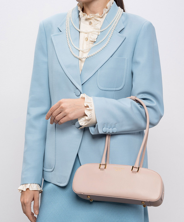 Рожева шкіряна сумка-багет з логотипом