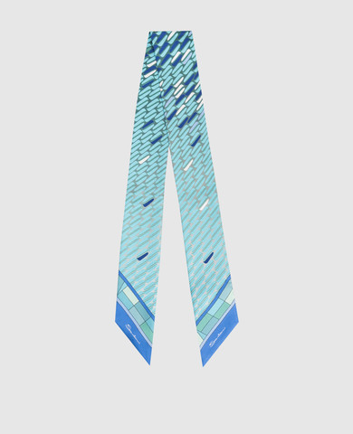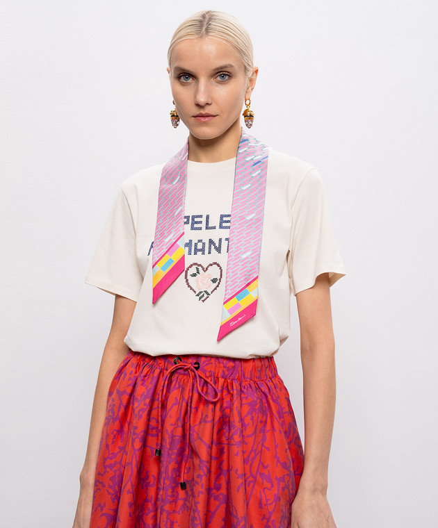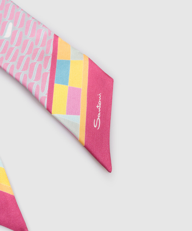 Рожева стрічка-твіллі із шовку в брендовий принт