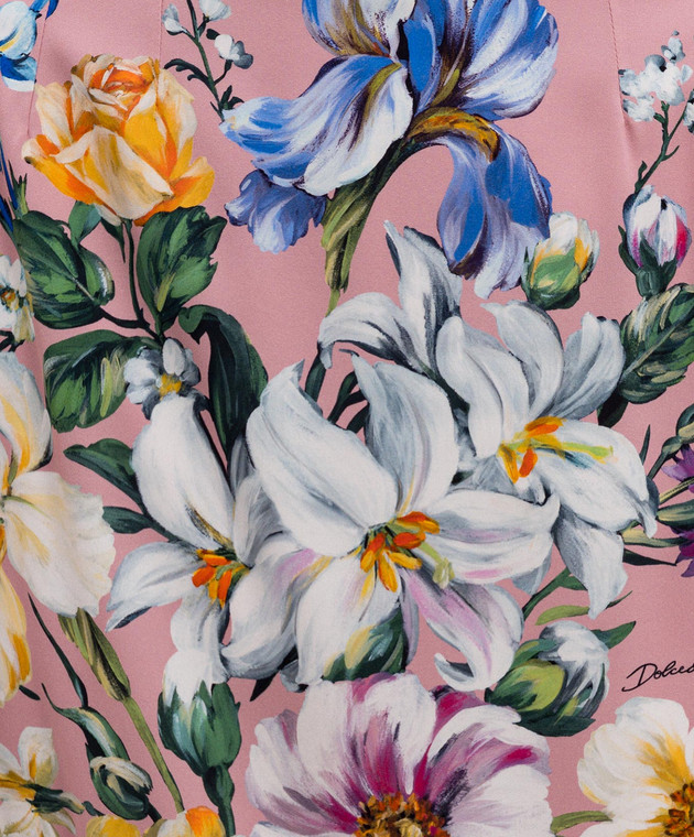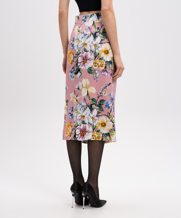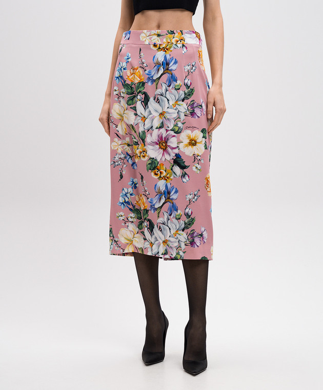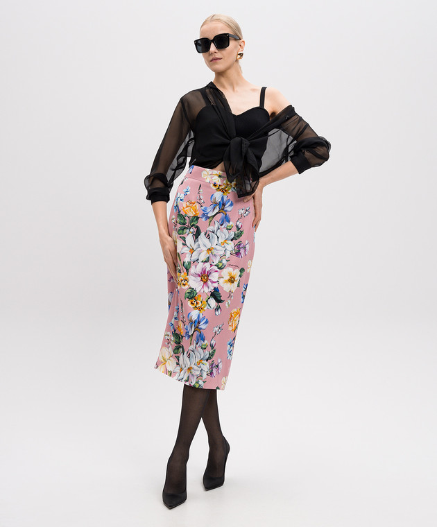Рожева спідниця міді з шовком в квітковий принт