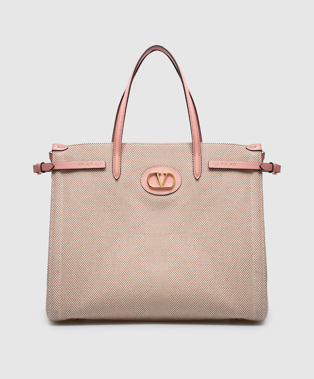 Рожева сумка-тоут з металевою емблемою VLogo Signature