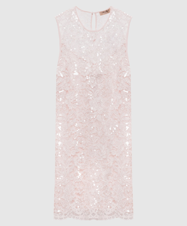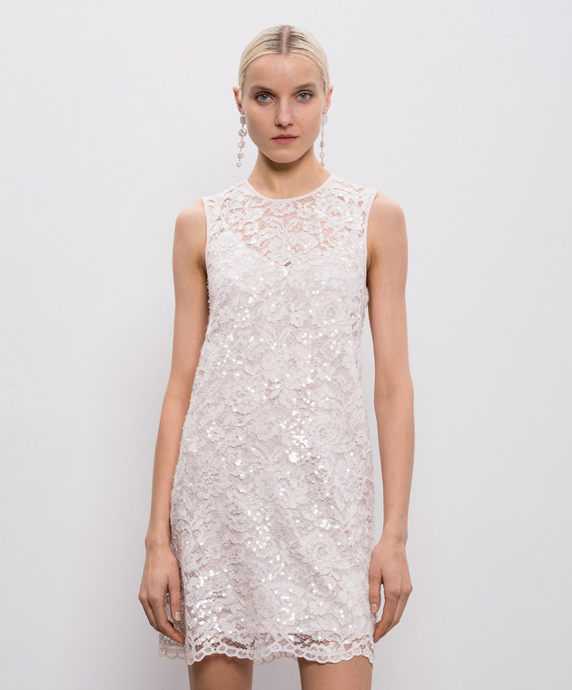 Рожева сукня міні в мереживо з паєтками
