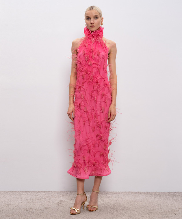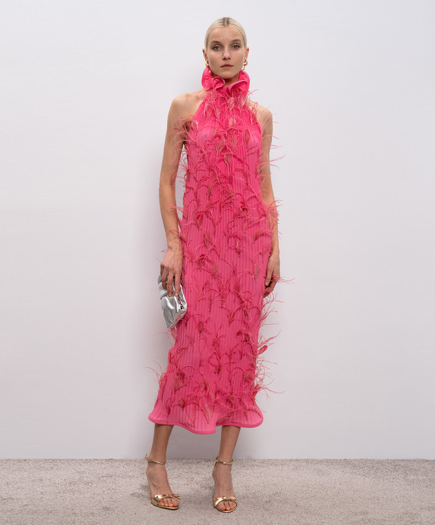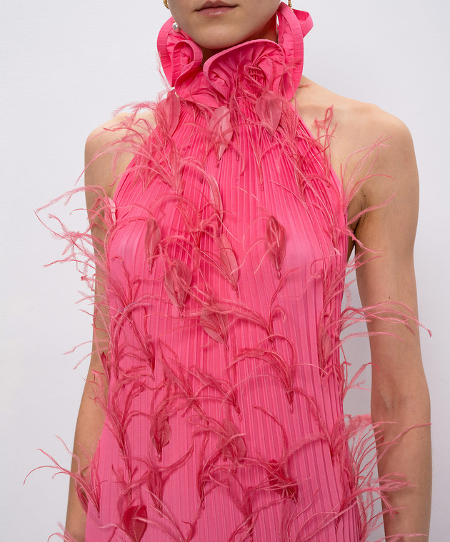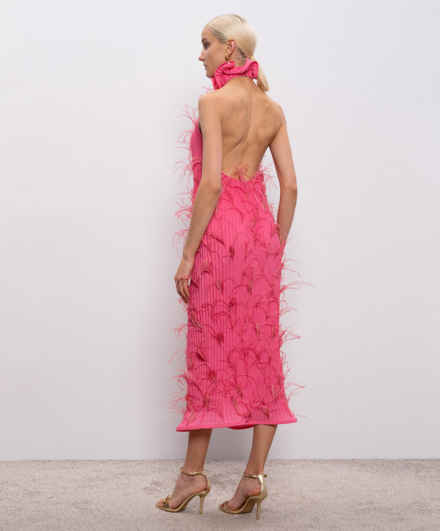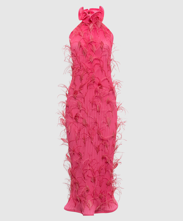 Рожева сукня-плісе з відкритою спиною з пір'ям