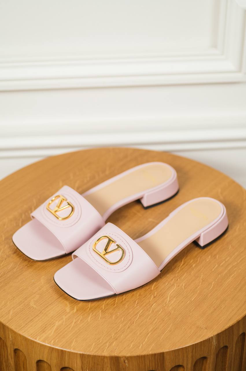 Рожеві шкіряні шльопанці VLogo Signature