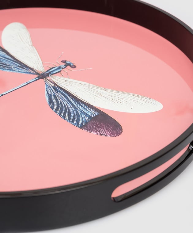 Рожевий дерев'яний лакований піднос Dragonfly