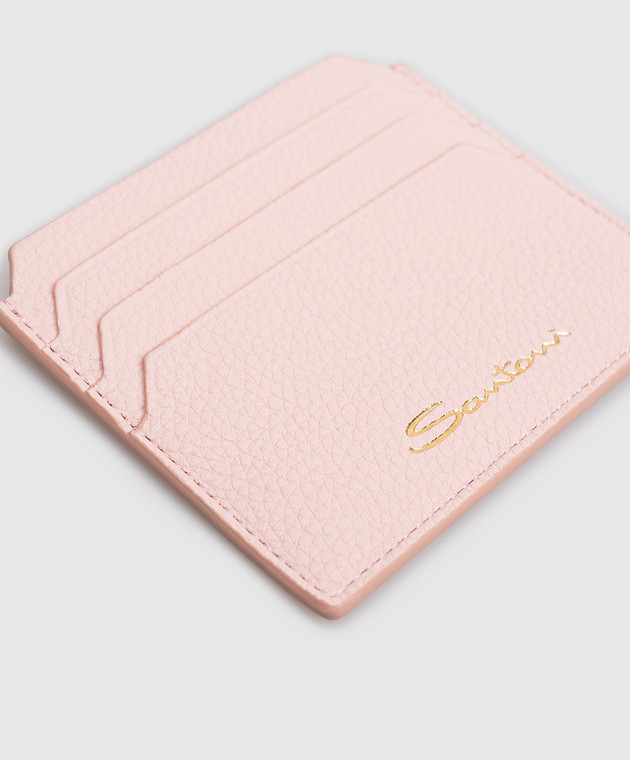 Рожевий шкіряний картхолдер з принтом логотипа