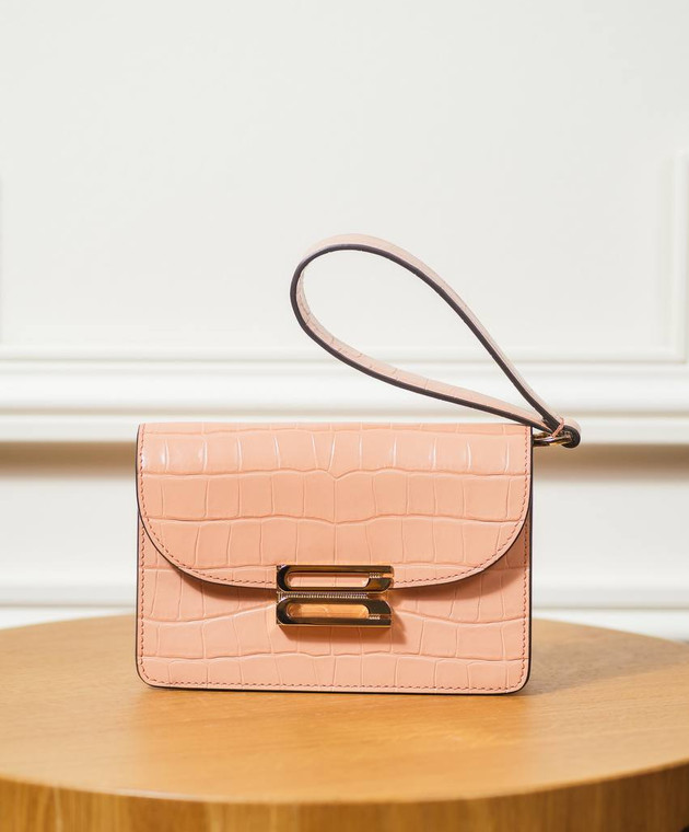 Рожевий шкіряний клатч Dorian з тисненням під шкіру крокодила