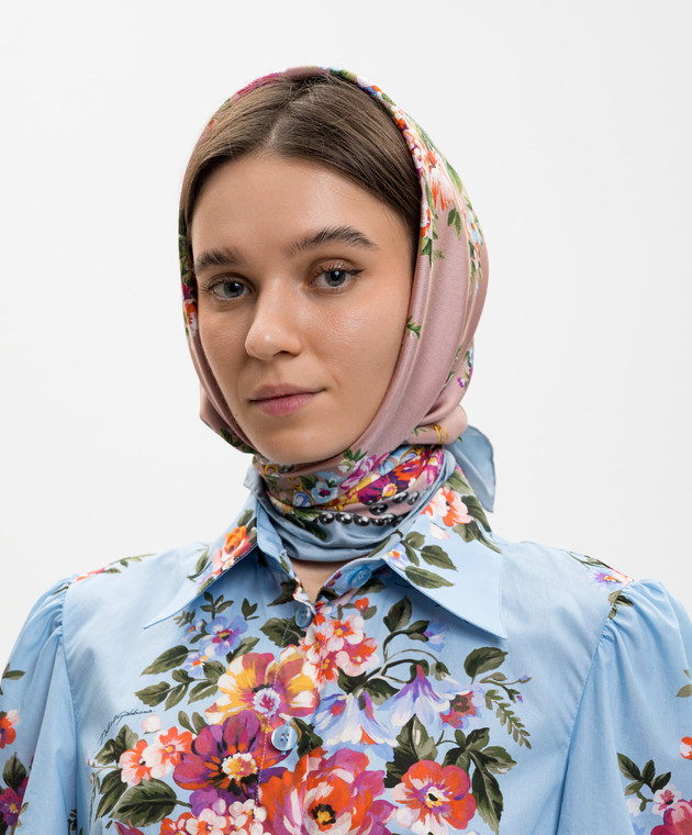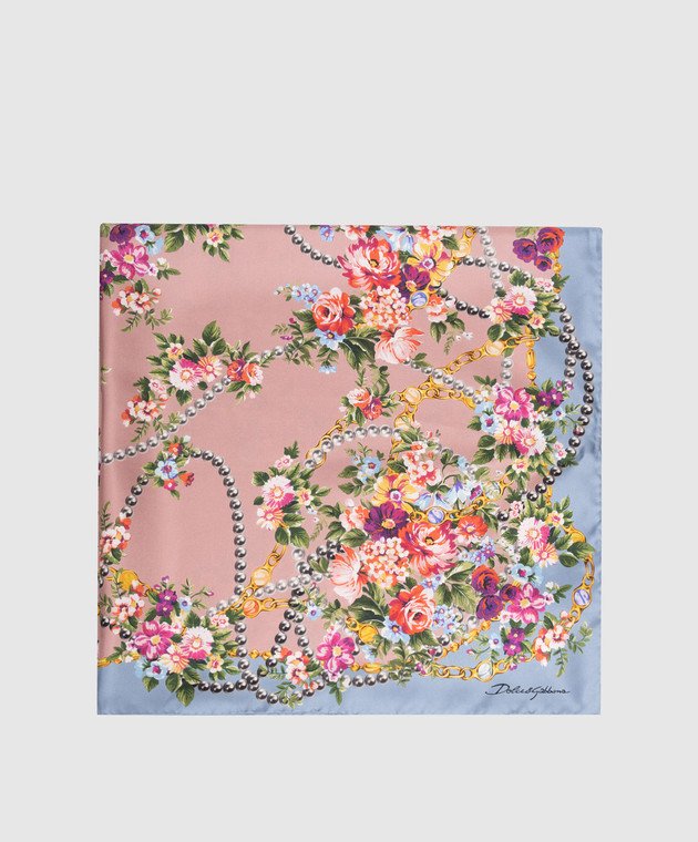 Рожева хустка із шовку в принт
