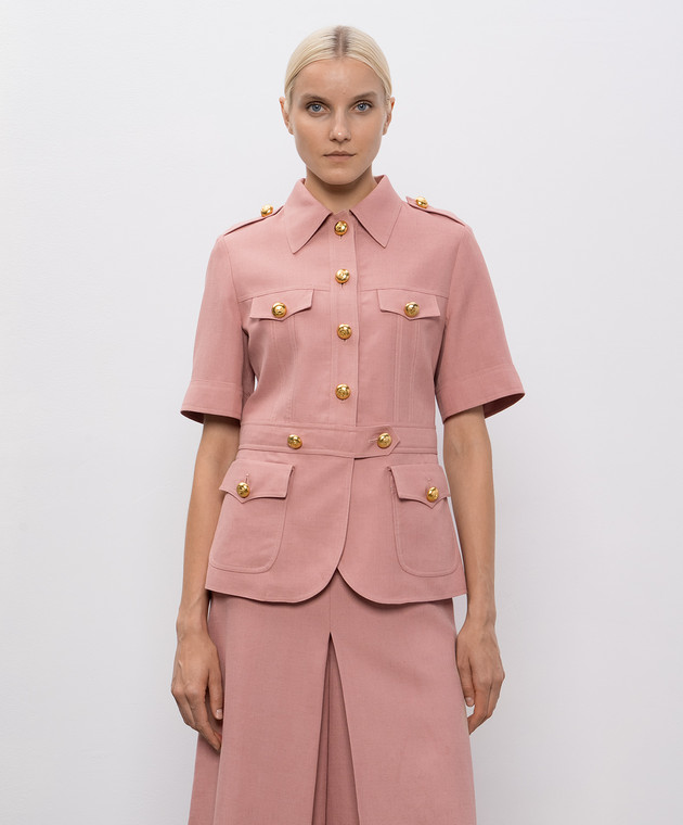 Рожевий жакет з кашеміром з короткими рукавами