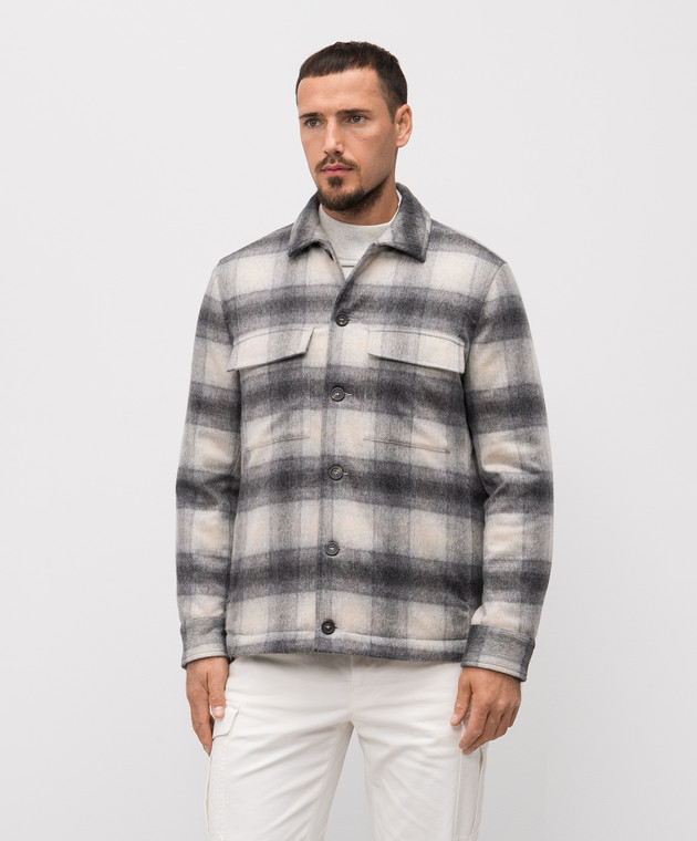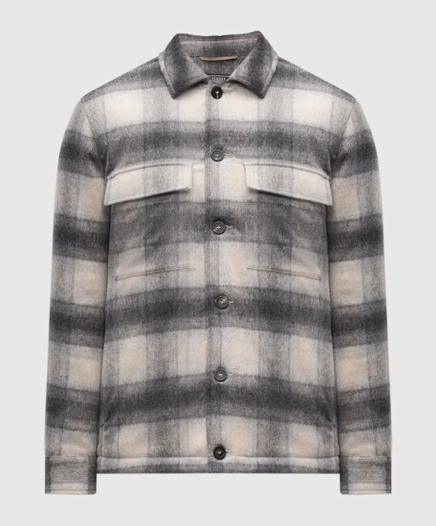 Сіра куртка з вовною в стилі сорочки в клітинку