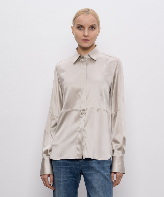 Бежева блуза із шовку з ланцюжком моніль