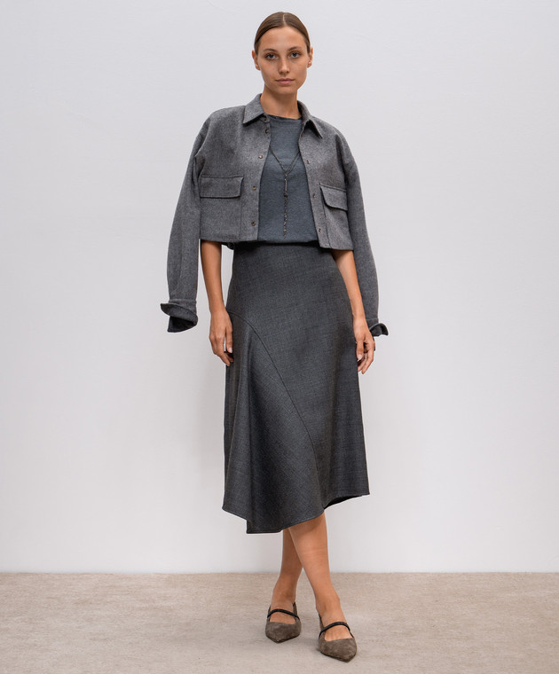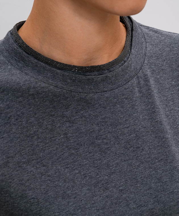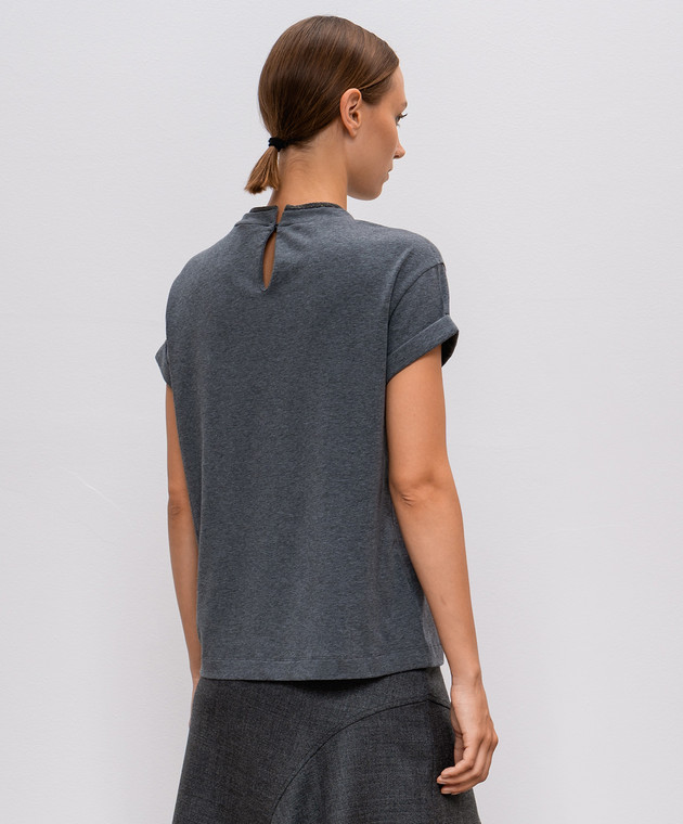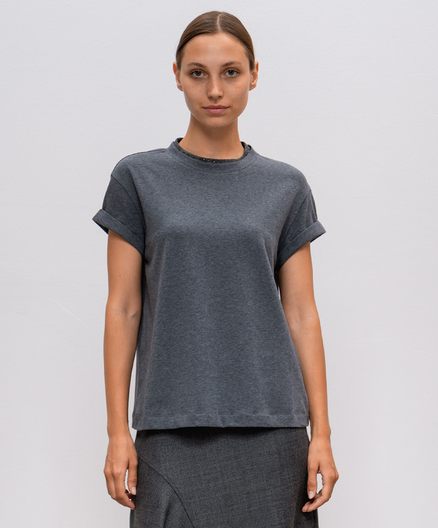 Сіра футболка з ланцюжком моніль з відворотами