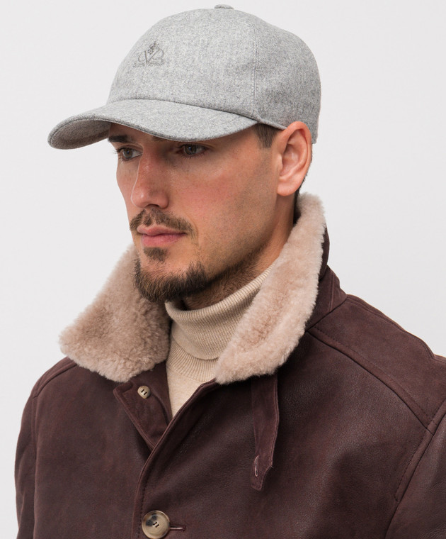 Сіра кепка з вовни з вишикою емблеми