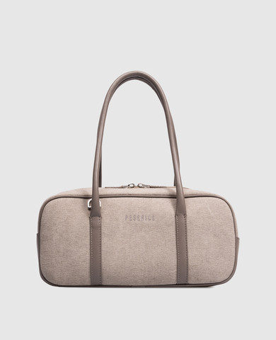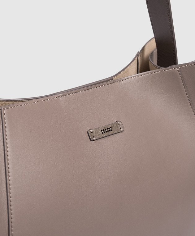 Сіра шкіряна сумка з брендовим патчем