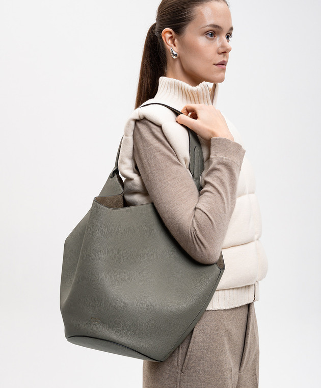 Шкіряна сумка-тоут Lotus кольору хакі