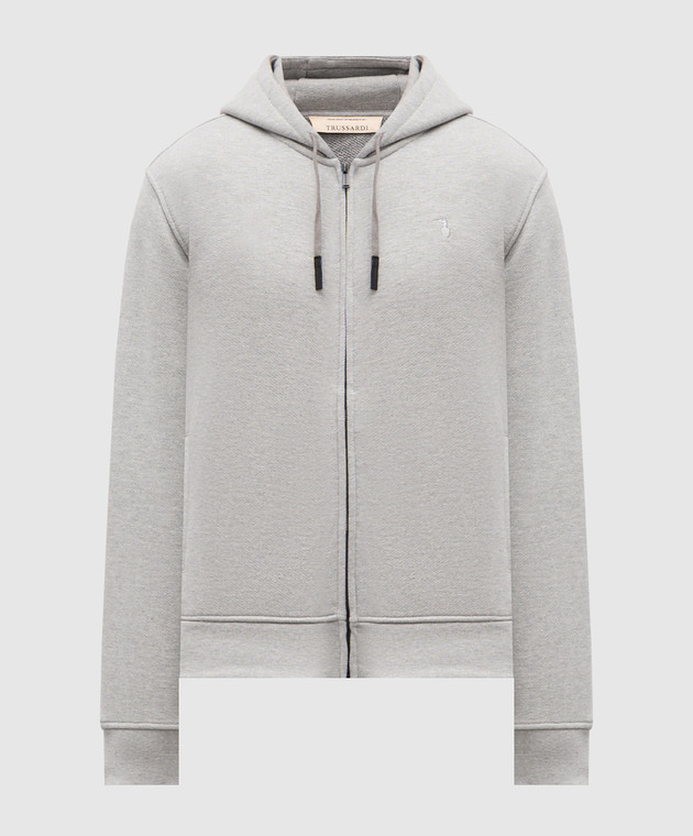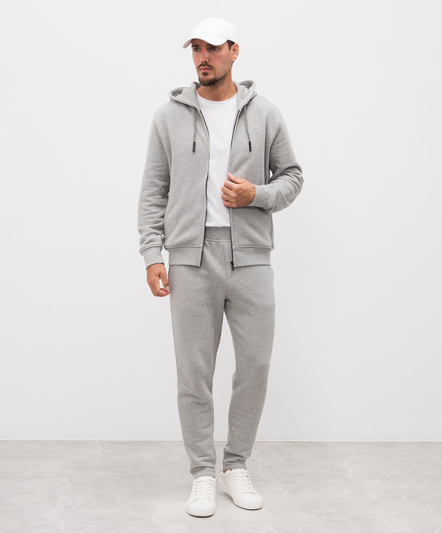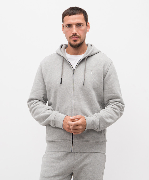 Сіра меланжева спортивна куртка з вишивкою емблеми