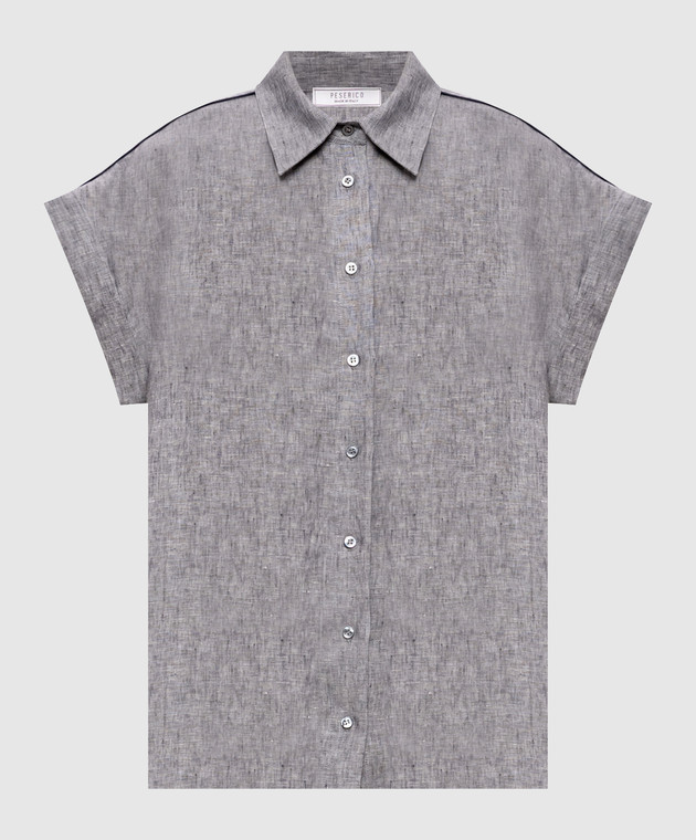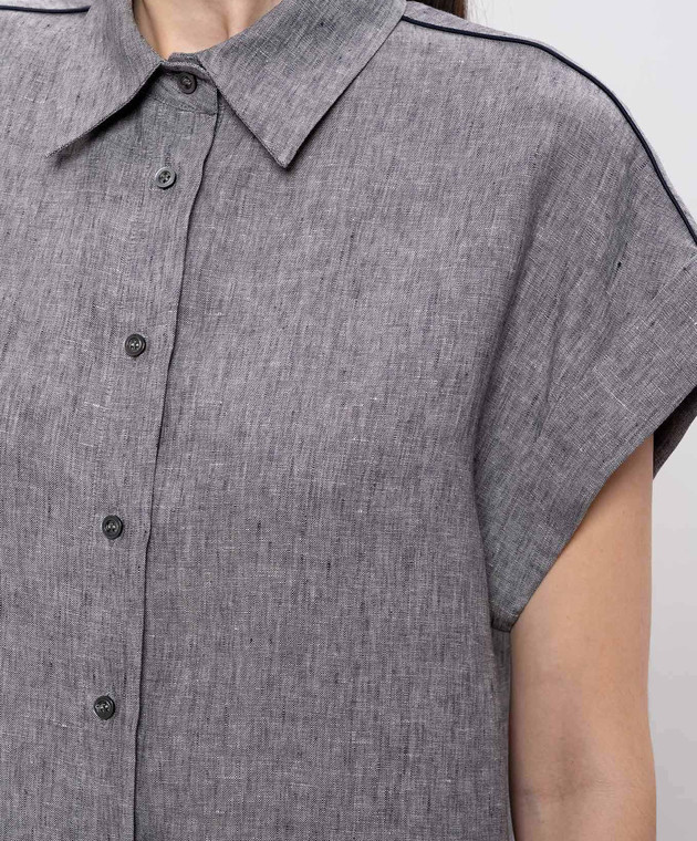 Сіра сорочка з льону з відворотами