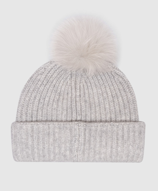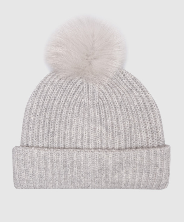 Yves Salomon Сіра шапка з кашеміру з помпоном з хутра 23WAA524XXMACA