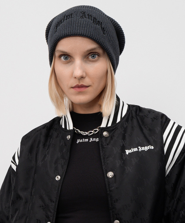 Palm Angels Сіра шапка з вовною з вишивкою логотипа PWLC015F25KNI002