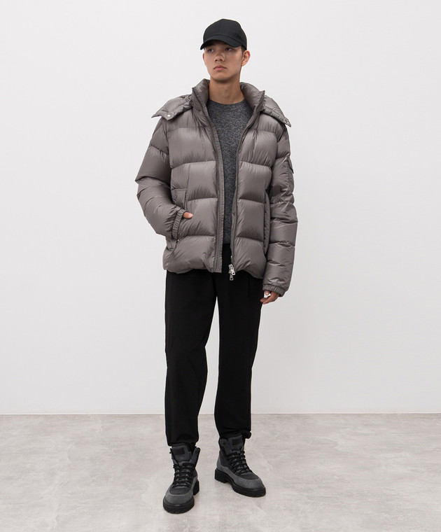 Сіра стьобана пухова куртка з нашивкою логотипа