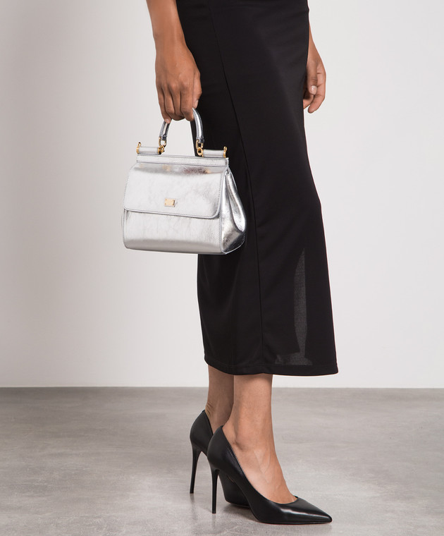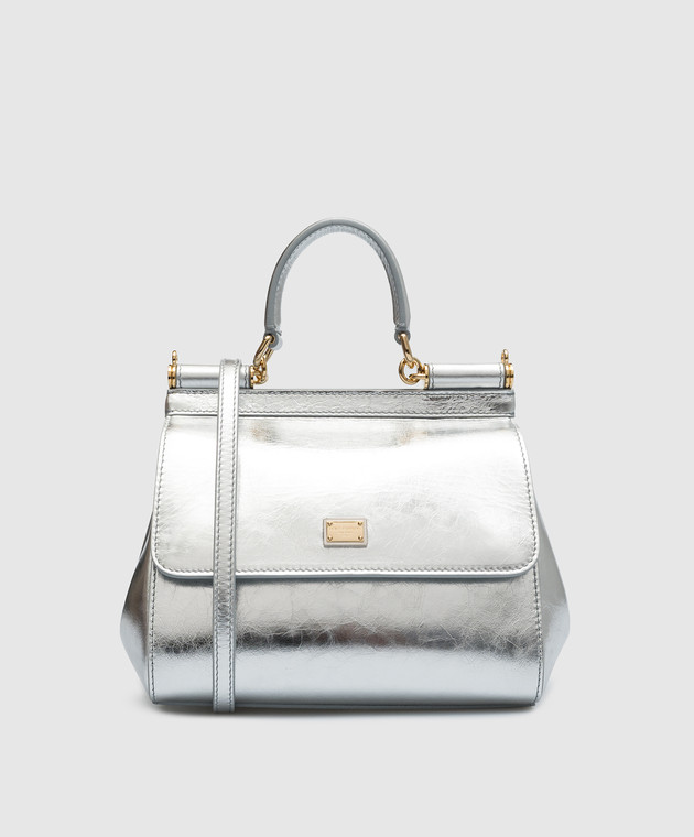 Срібляста шкіряна сумка-сетчел SICILY