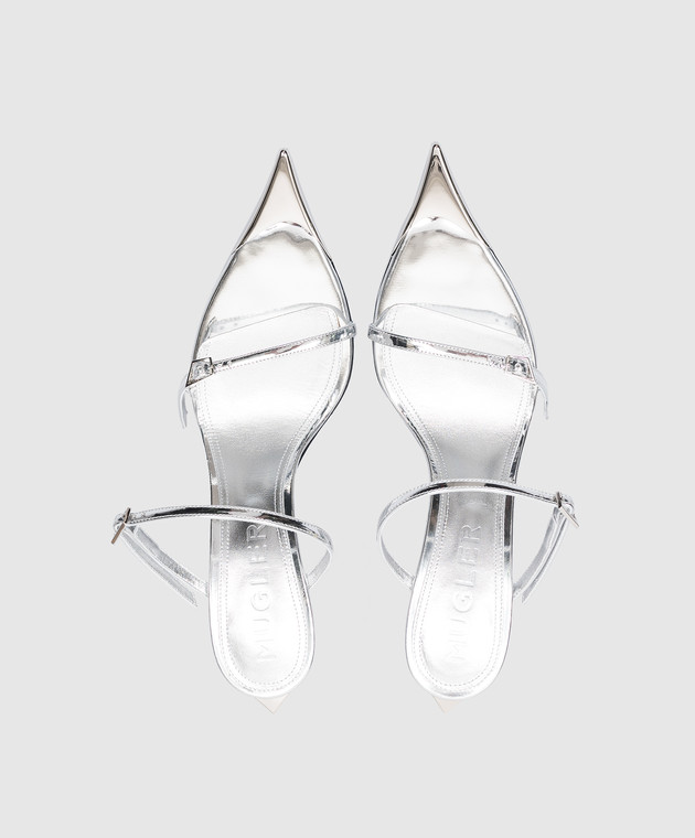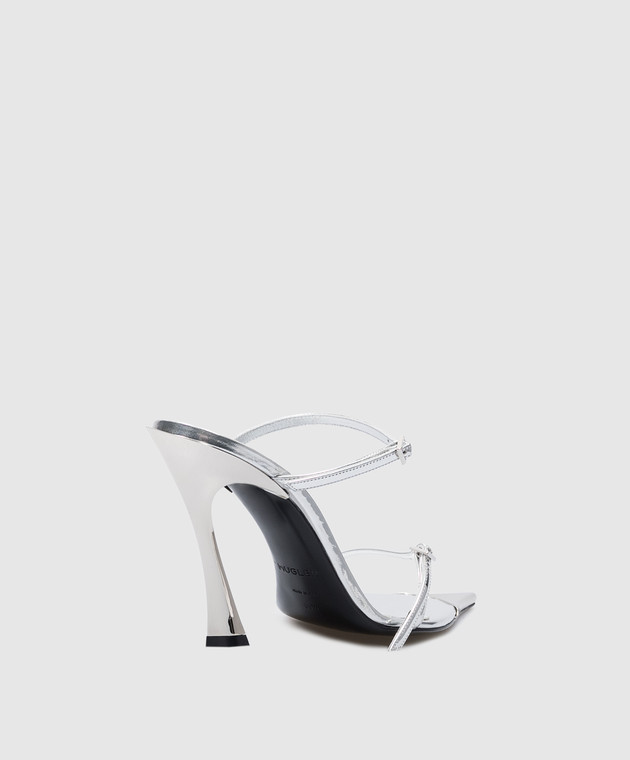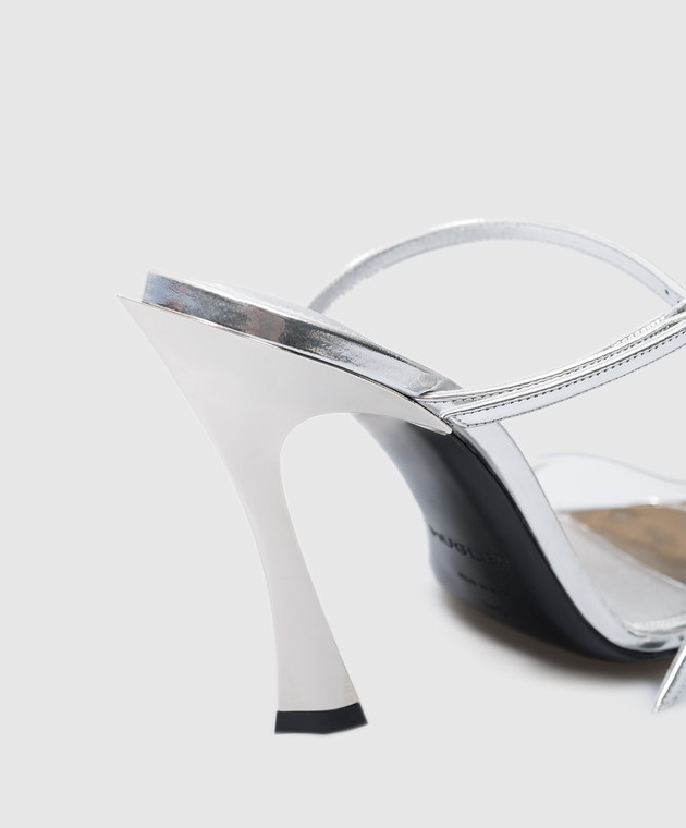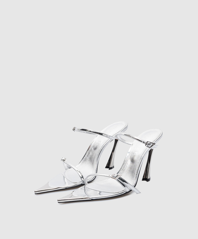 Сріблясті шкіряні мюлі з металевим оздобленням