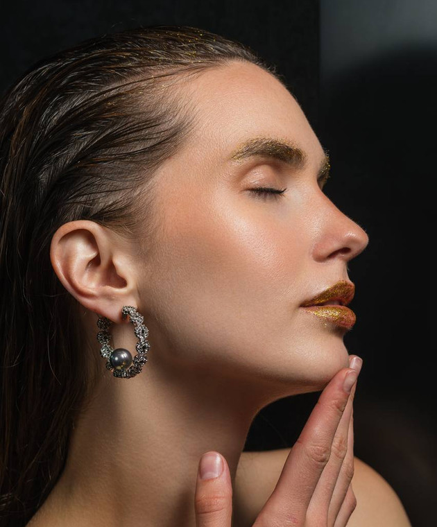 сережки-конго із покриттям з намистинами і кристалами
