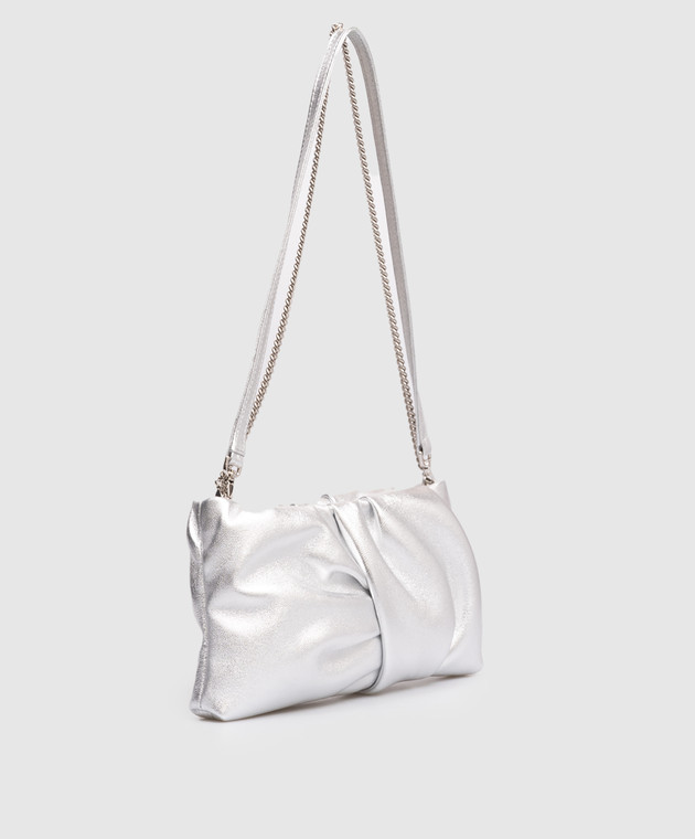 Сріблястий шкіряний клатч Bonny