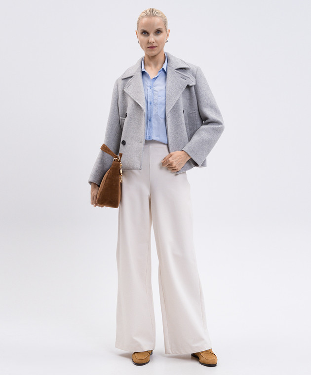 Сіре двобортне укорочене пальто Nola з вовною та кашеміром