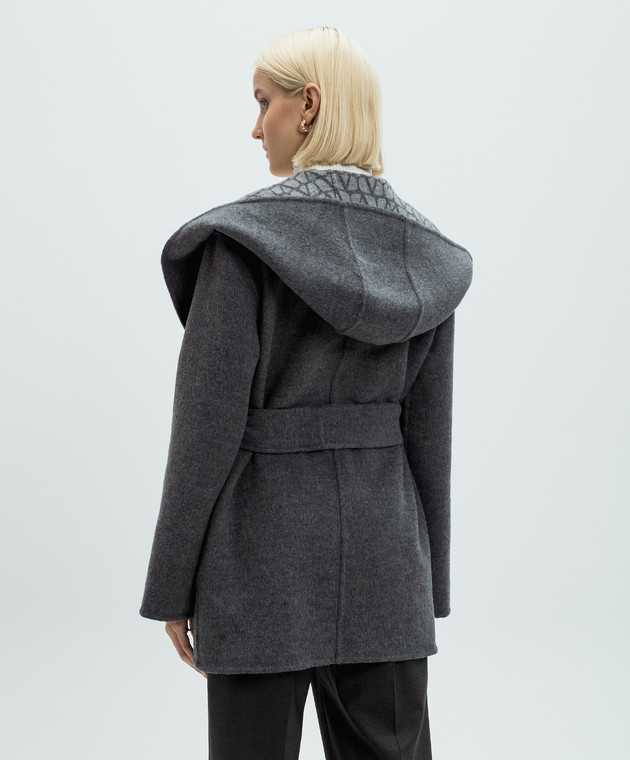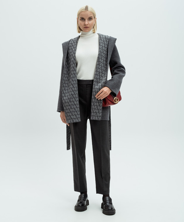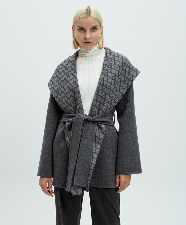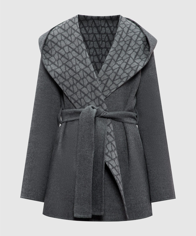 Сіре двостороннє пальто на запах з вовни і кашеміру з візерунком Iconographe