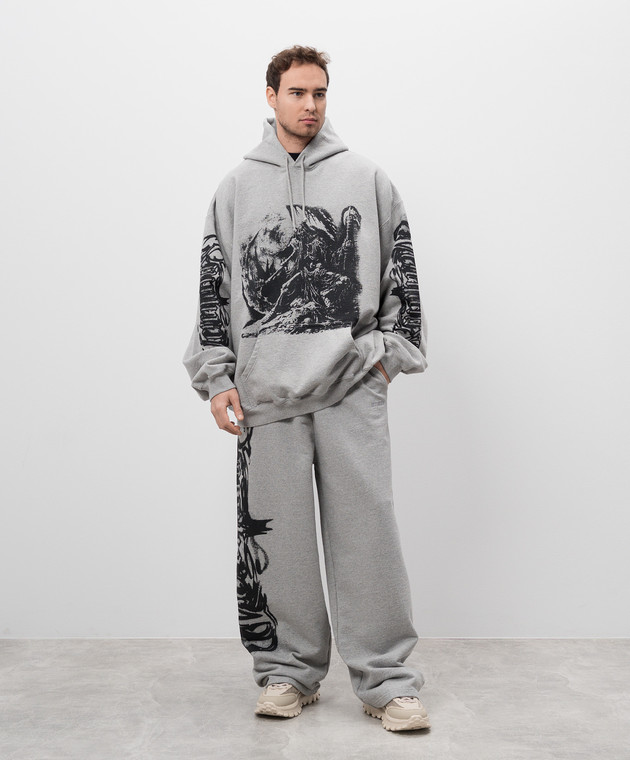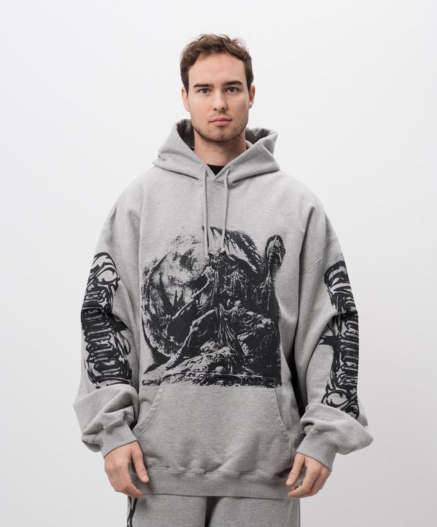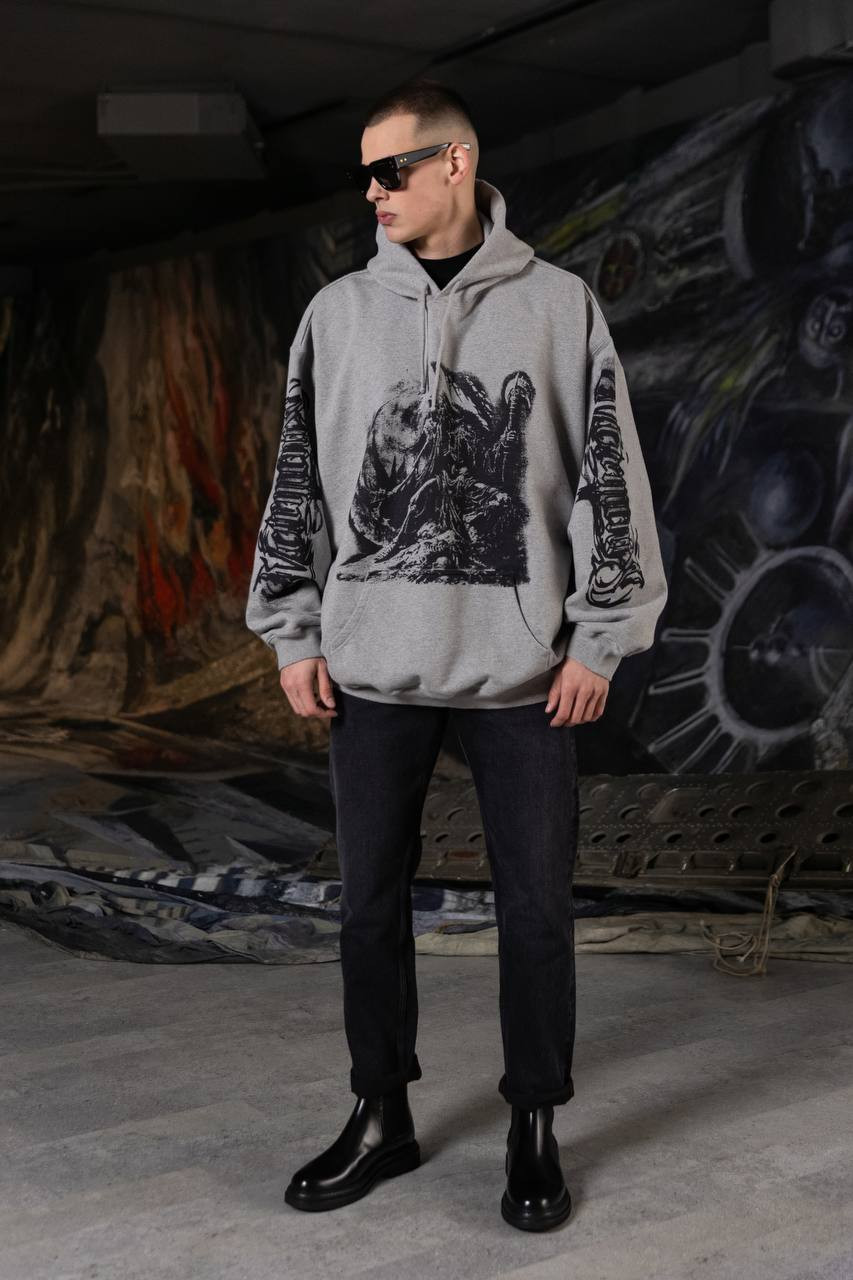 Сіре меланжеве худі з принтом