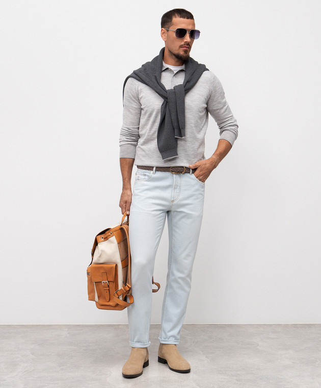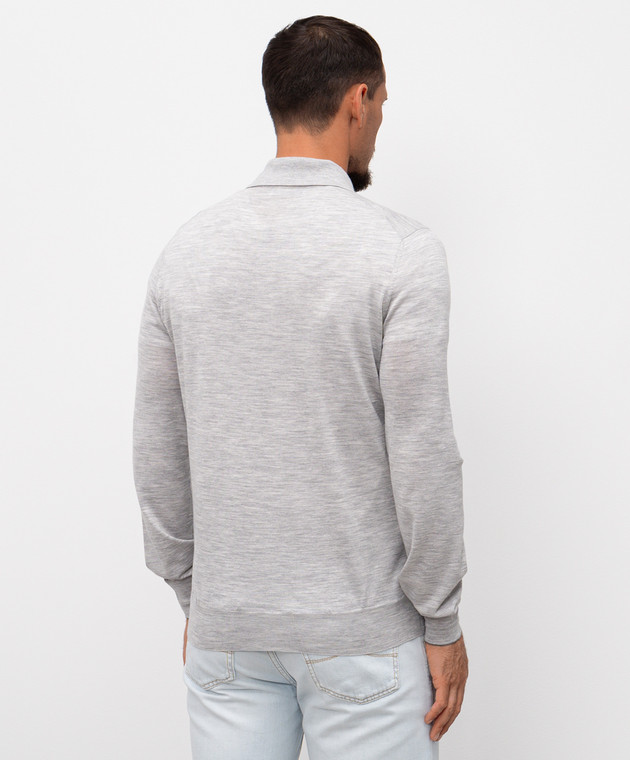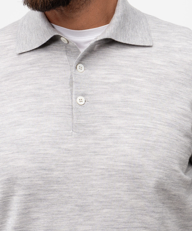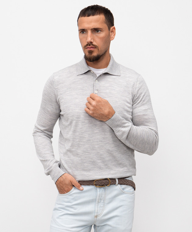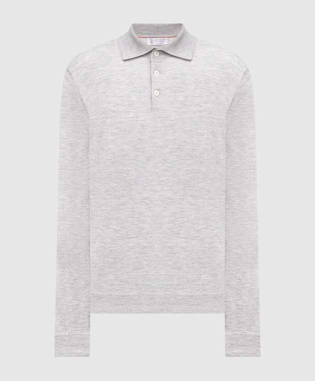 Brunello Cucinelli Сіре меланжеве поло з вовни та кашеміру з довгими рукавами M2400295