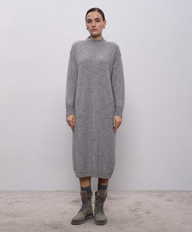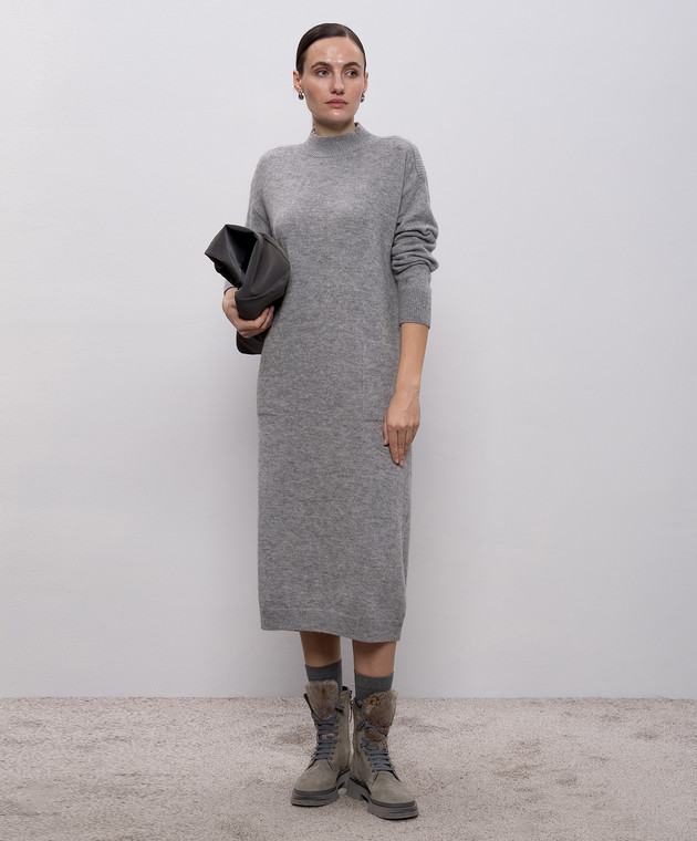 Сіра сукня з вовни, шовку і кашеміру з ланцюжком моніль
