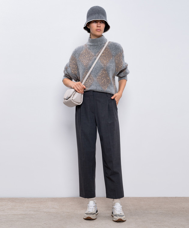 Сірі штани з вовною з ланцюжком моніль