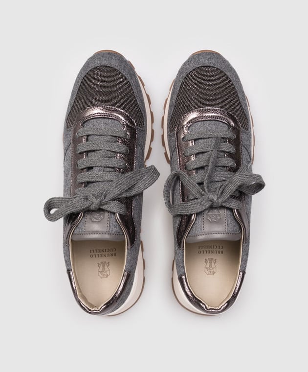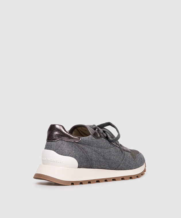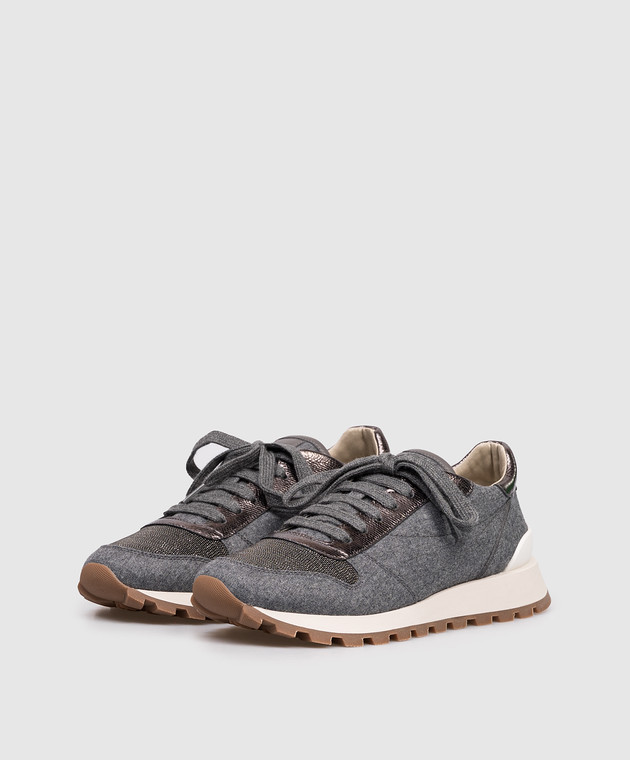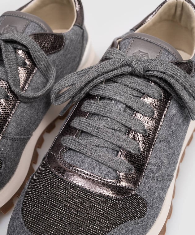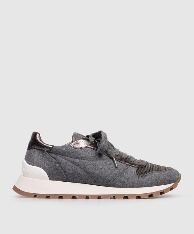 Сірі комбіновані кросівки з вовною з ланцюжком моніль