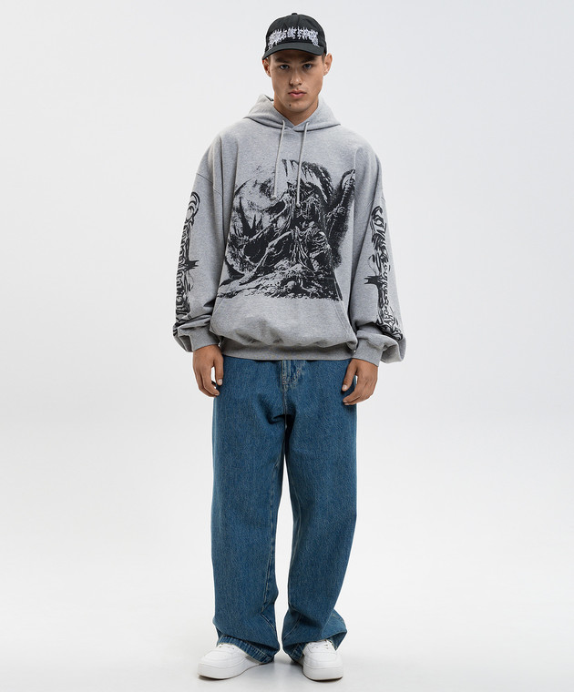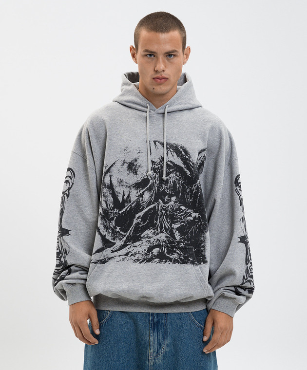 Сіре меланжеве худі з принтом
