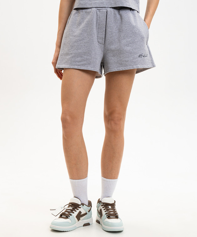 Сірі меланжеві шорти з принтом логотипа