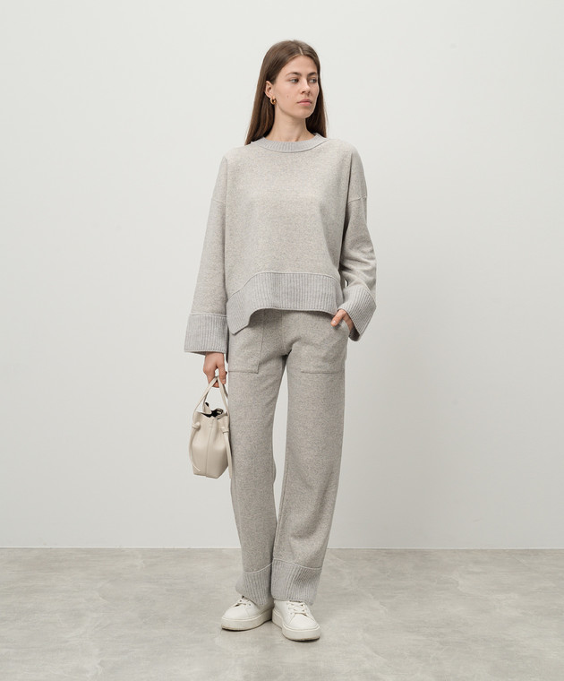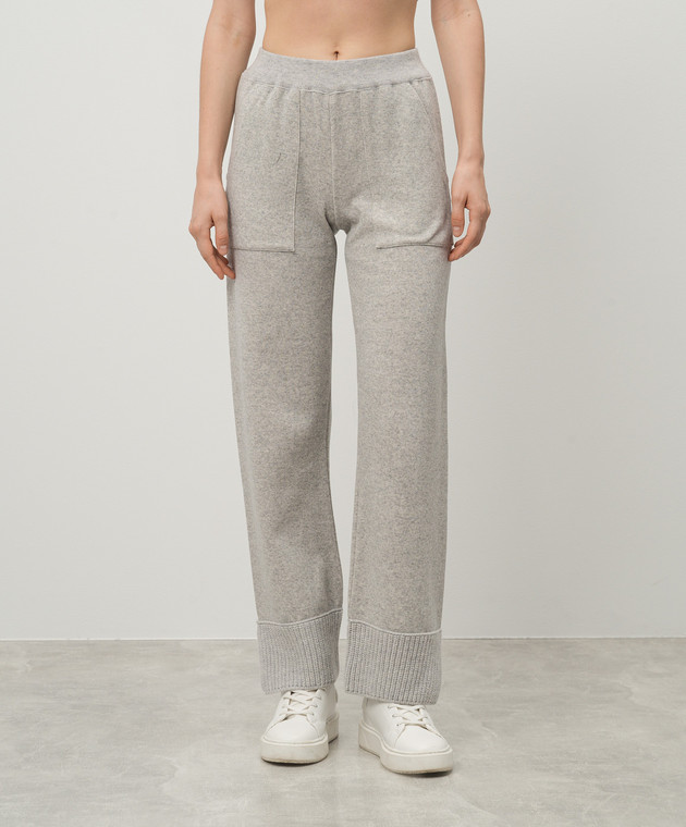 Сірі меланжеві спортивні штани з кашеміром і вовною з металевим логотипом