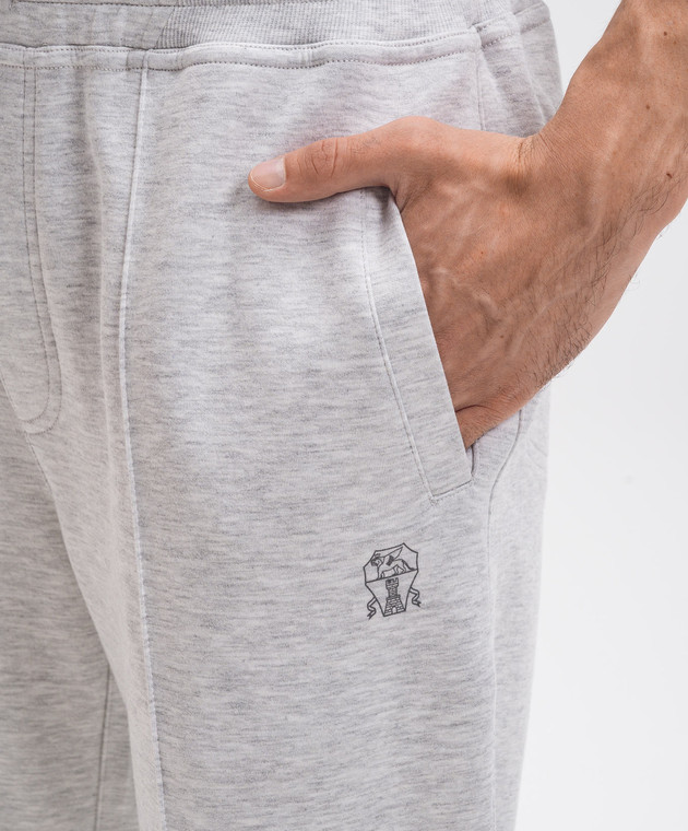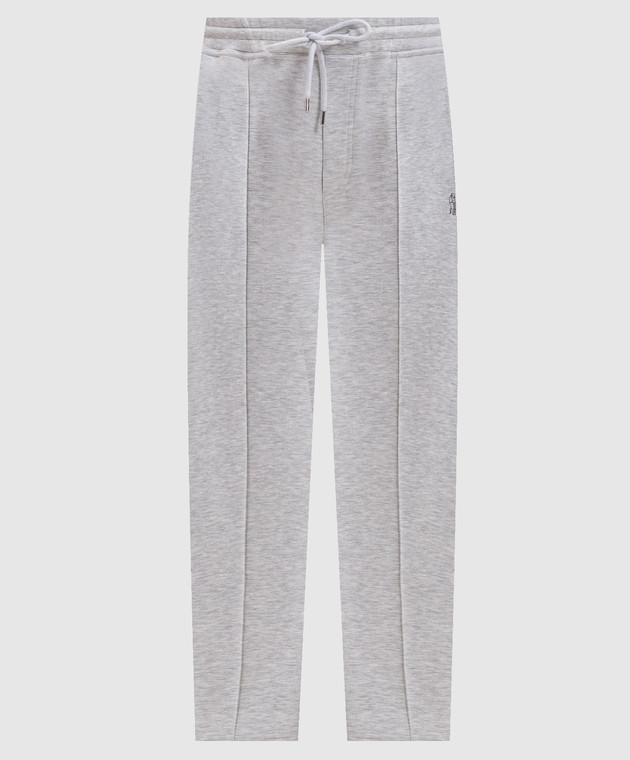 Сірі меланжеві спортивні штани з кашеміром з принтом логотипа