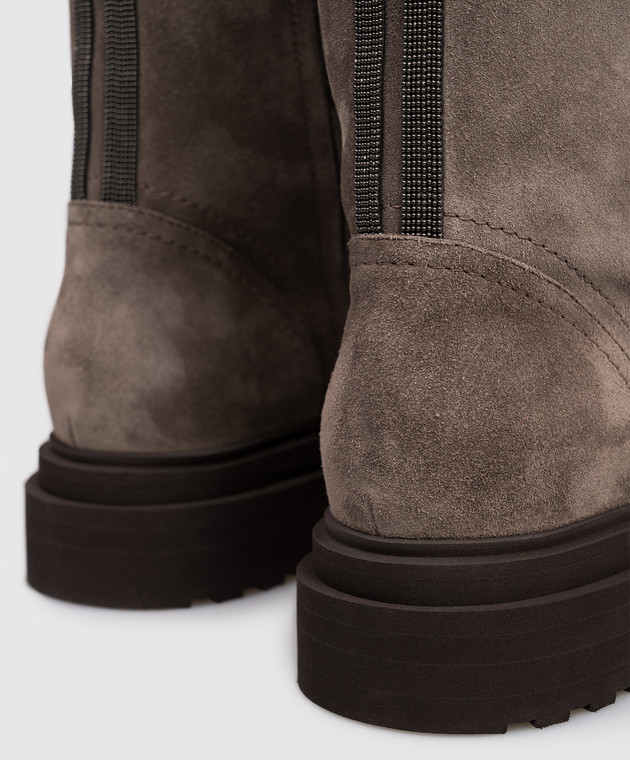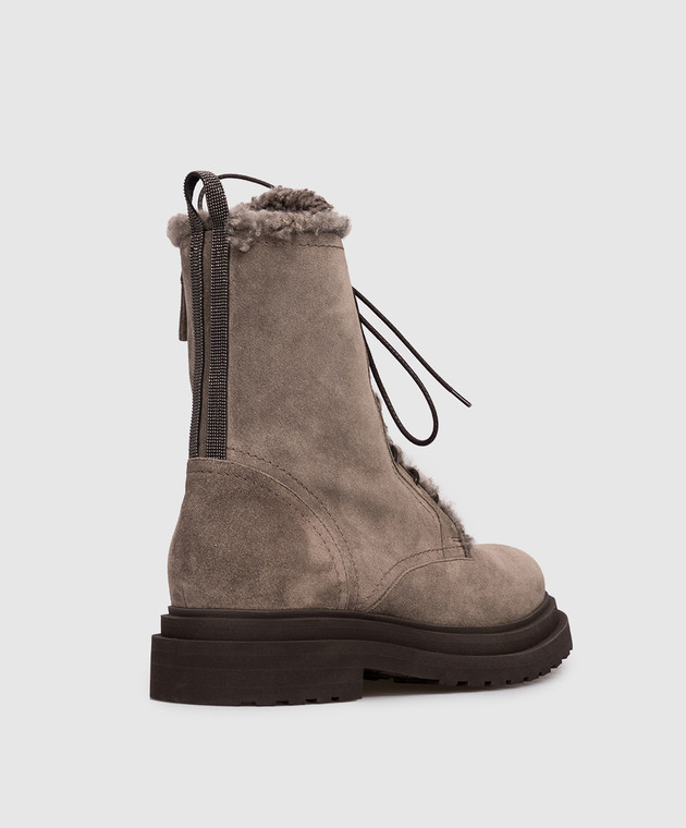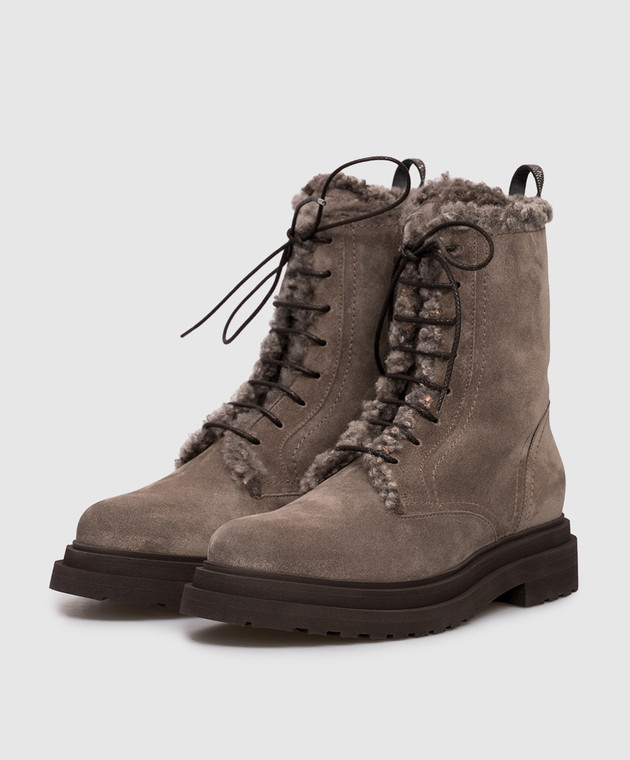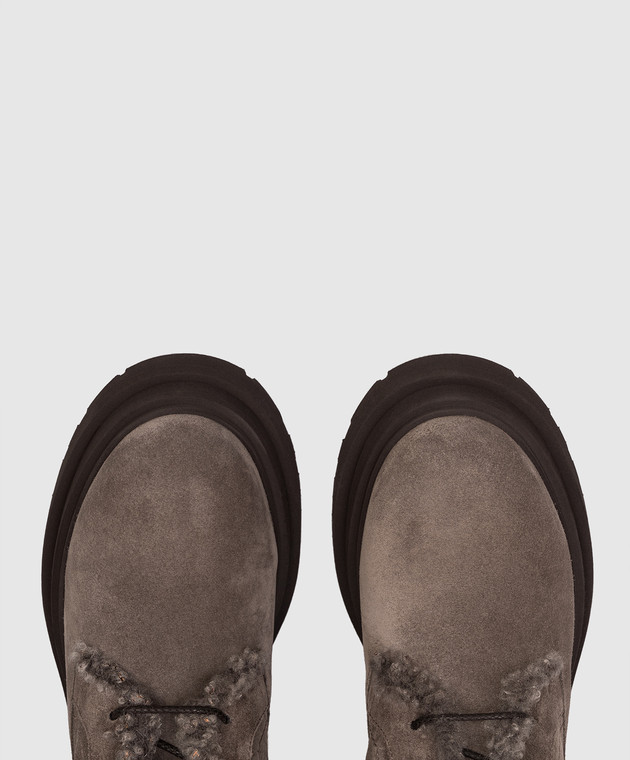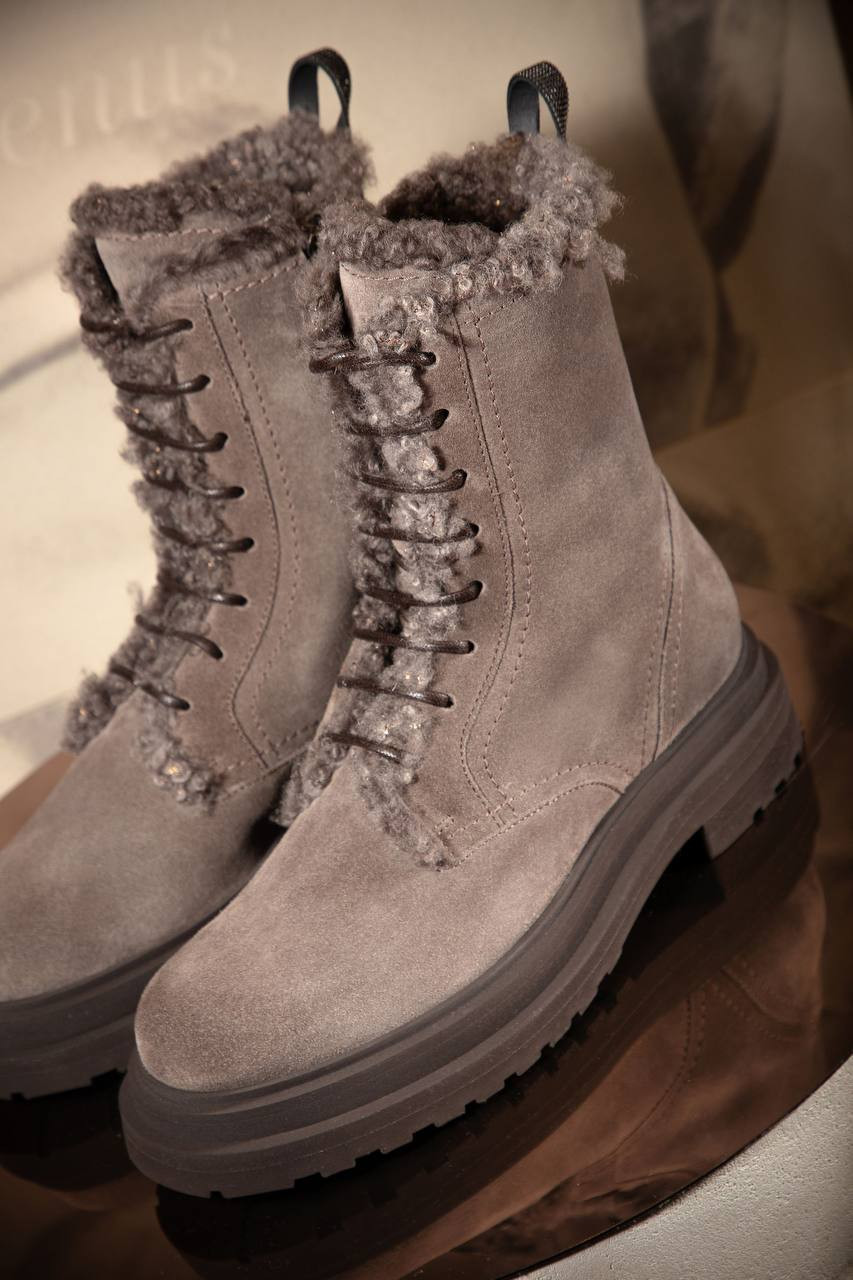 Сірі замшеві черевики на хутрі з ланцюжком моніль