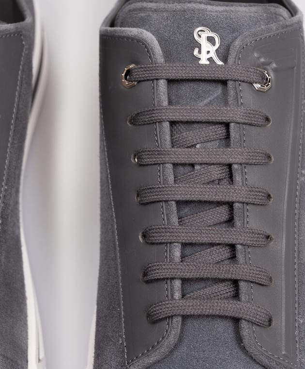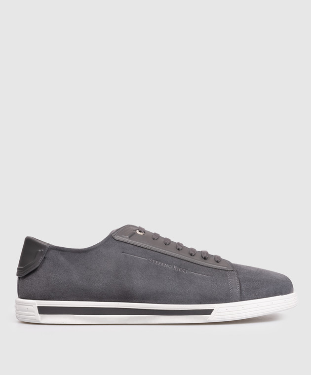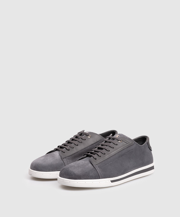 Сірі замшеві кросівки з монограмою логотипа