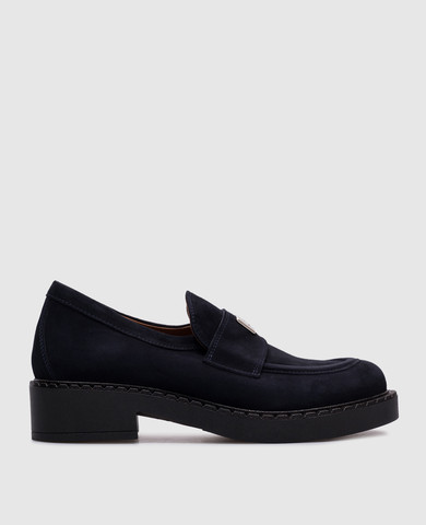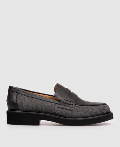 Сірі замшеві лофери на хутрі