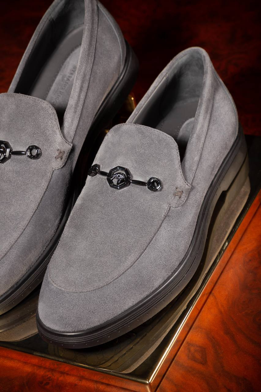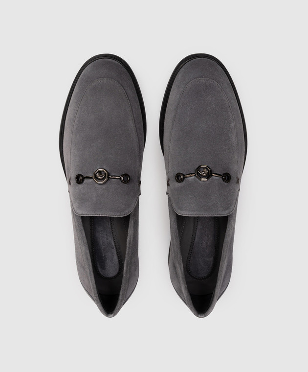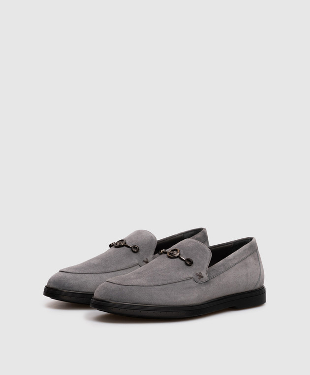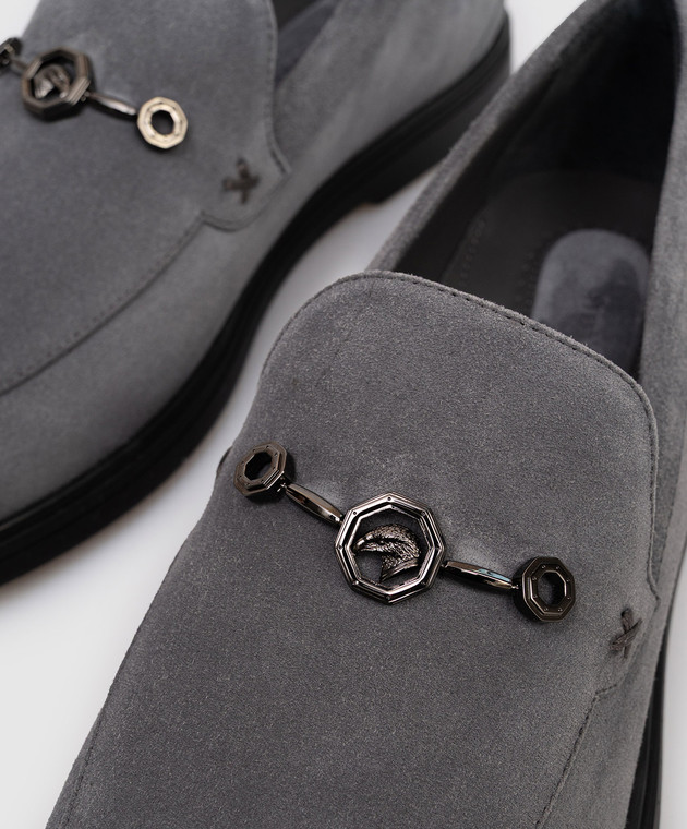Сірі замшеві лофери з емблемою у вигляді голови орла