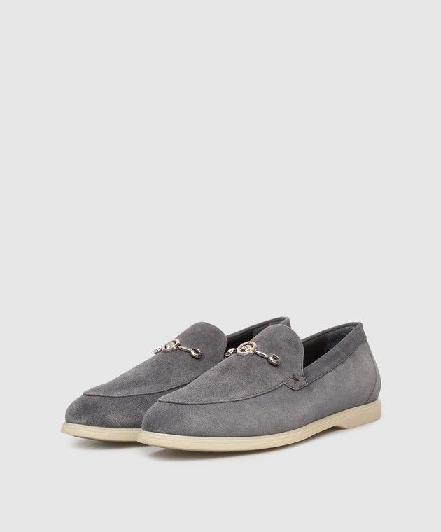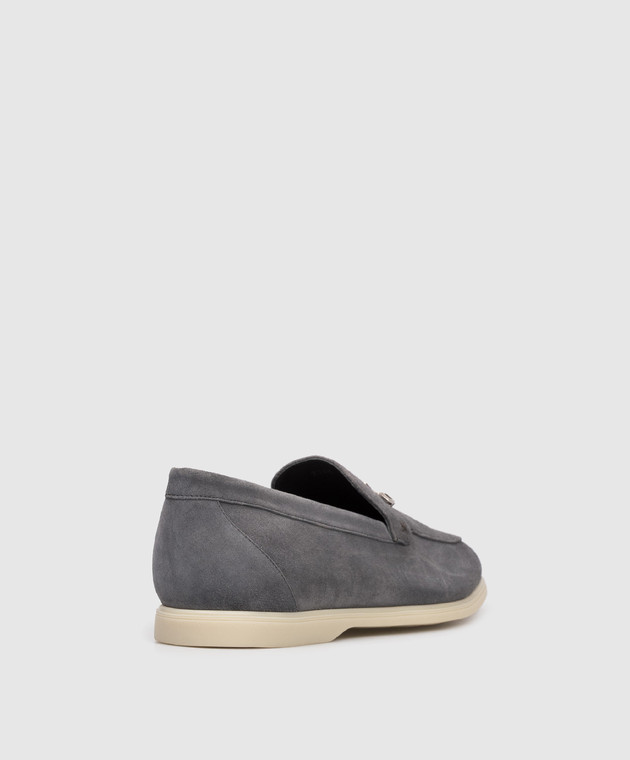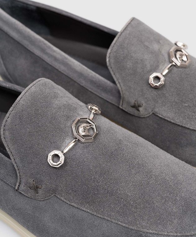 Сірі замшеві лофери з емблемою у вигляді голови орла
