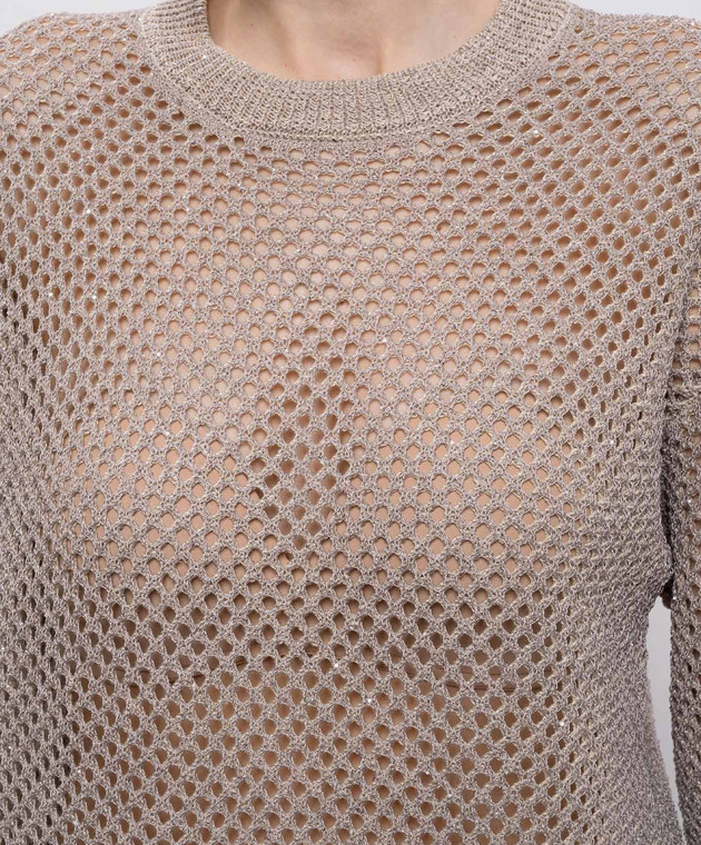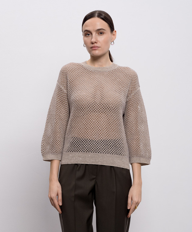 Сірий ажурний джемпер з льоном