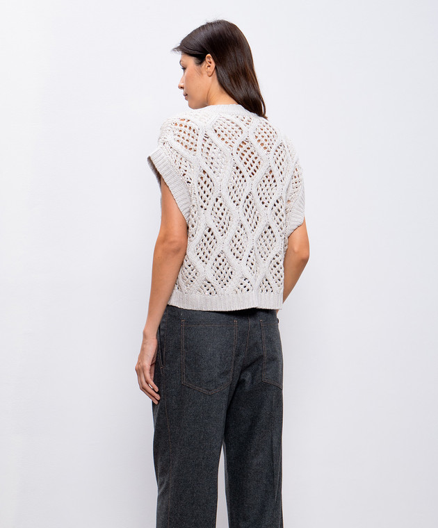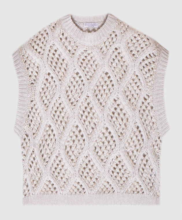 Сірий ажурний жилет з кашеміру з паєтками
