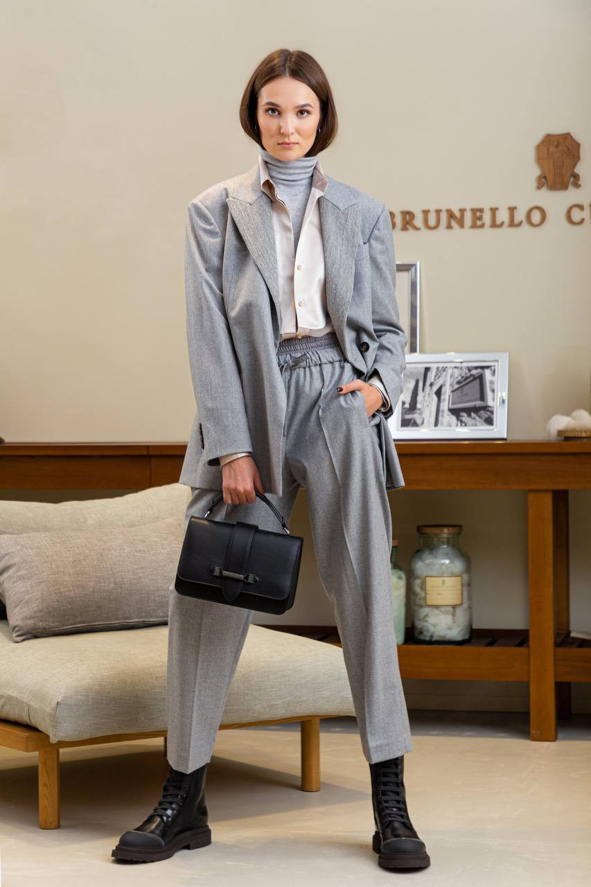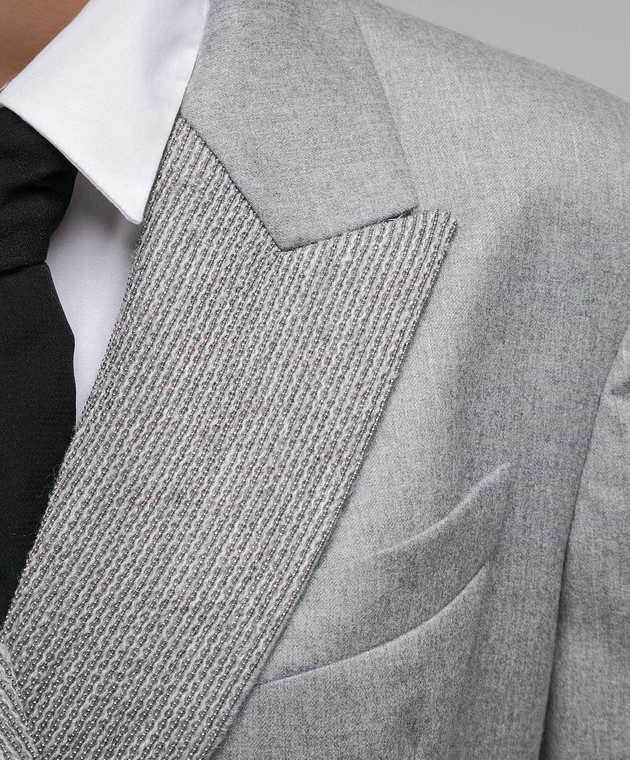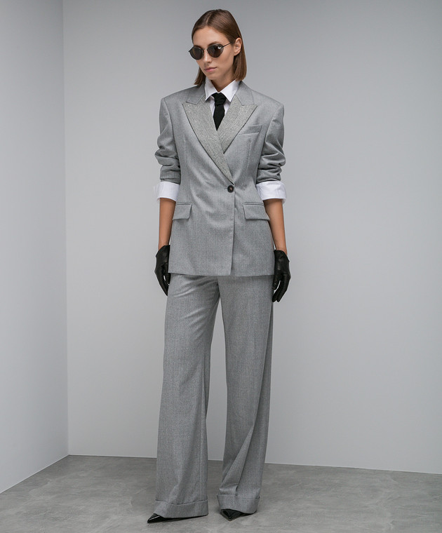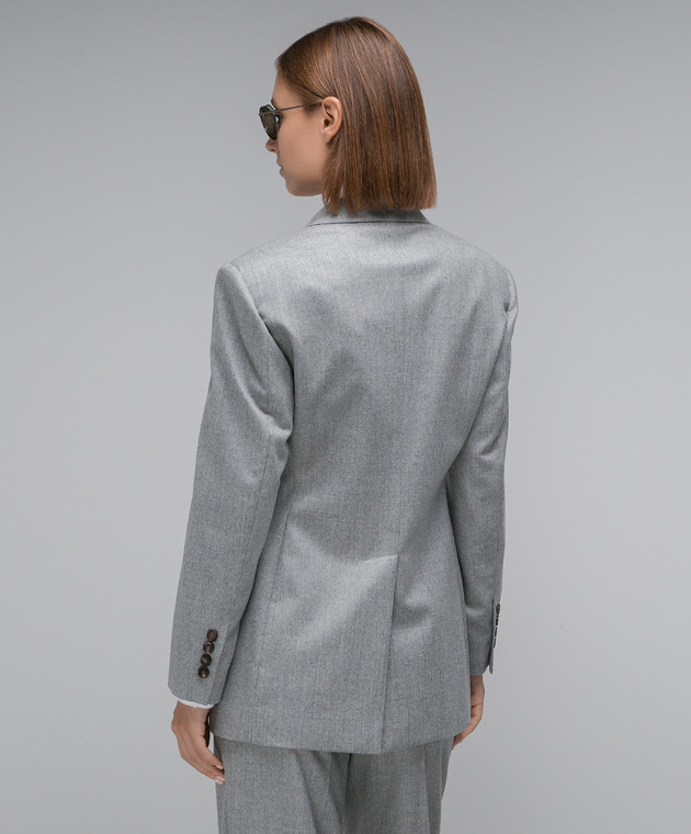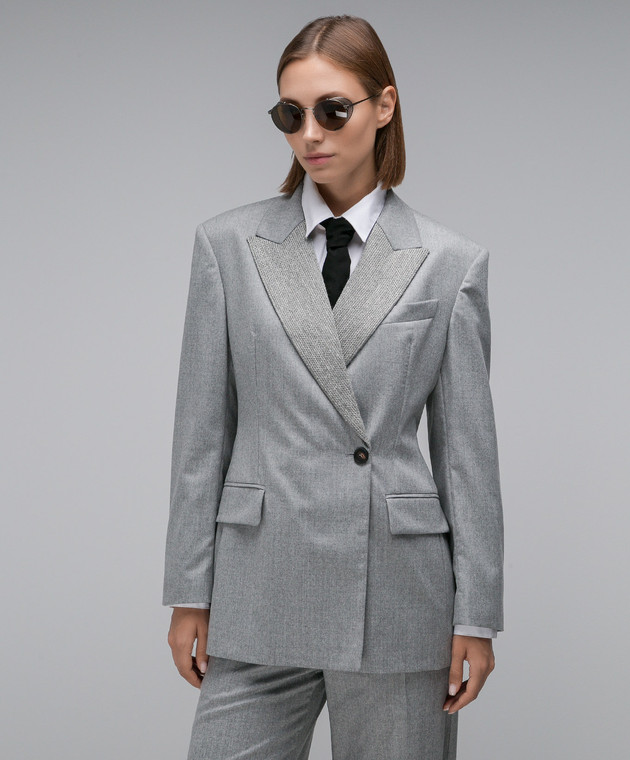 Сірий двобортний жакет з вовни з ланцюжком моніль