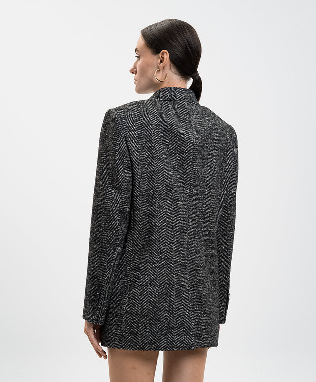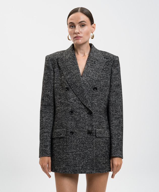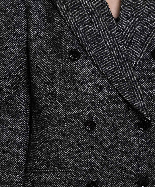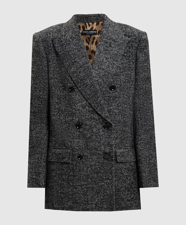 Сірий двобортний жакет з вовною у візерунок