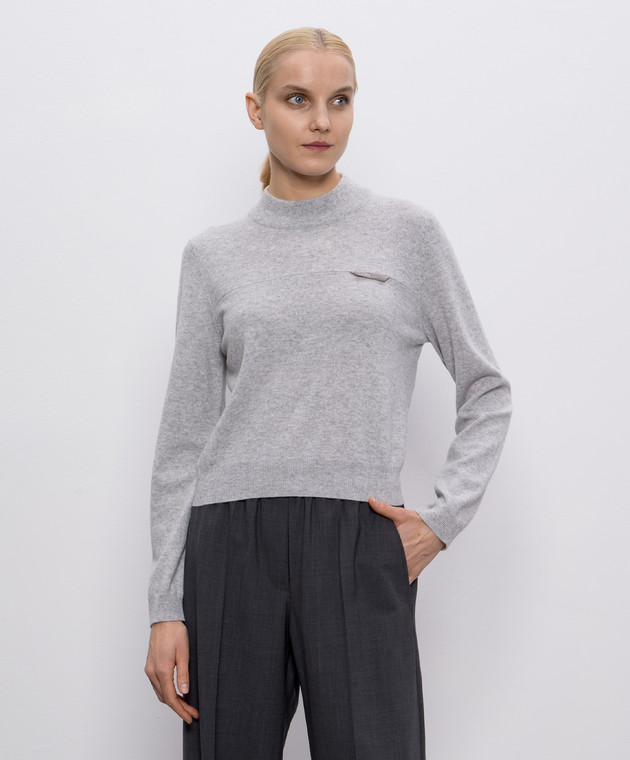 Сірий джемпер з кашеміру з ланцюжком моніль