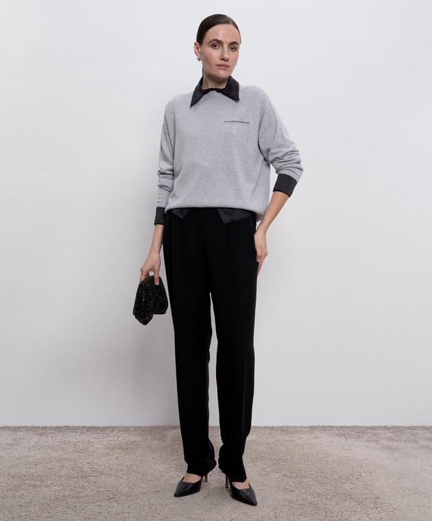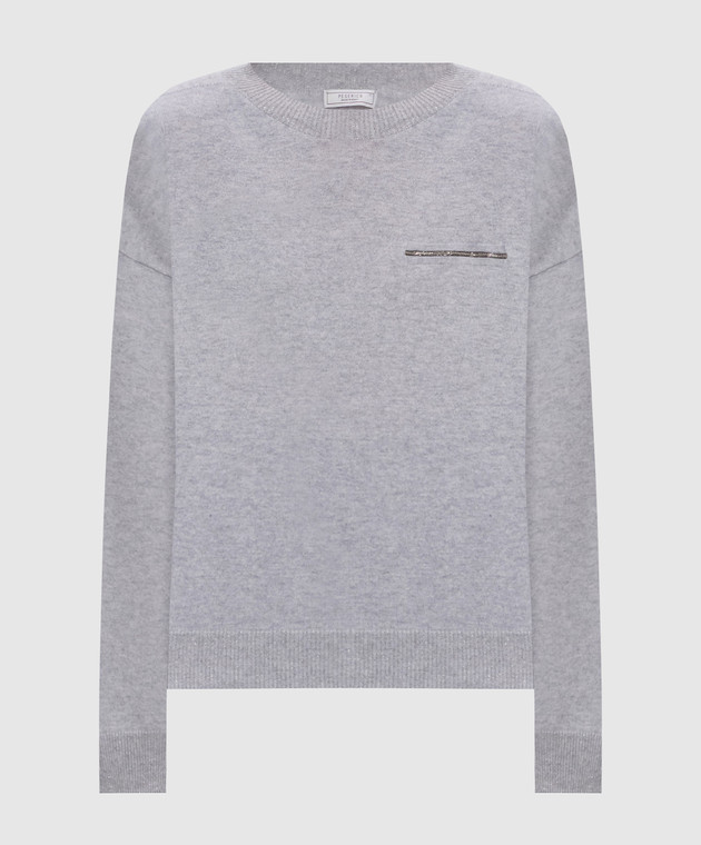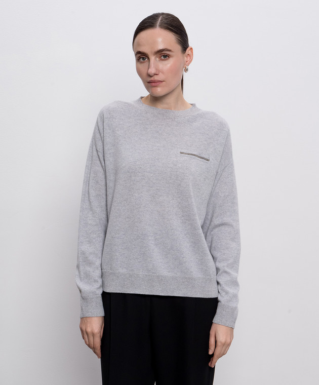 Сірий джемпер з кашеміру з ланцюжком моніль
